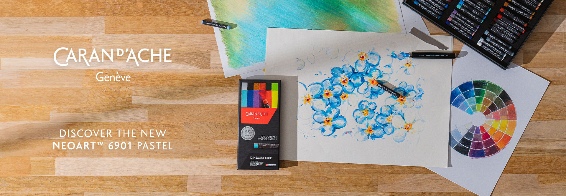 Caran d’Ache Neoart 6901 wax oil pastels are part of the brand’s Expert range and are the first wax and oil pastels to comply with ASTM D-6901, guaranteeing exceptional lightfastness for up to 100 years.